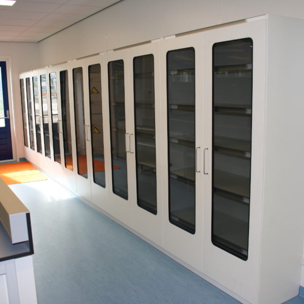 | Uitgevoerde werkzaamheden | Glazen wanden Gesloten wanden Deuren Plafond Afwerking in flush gemonteerde deuren en kozijnen Totaal afwerking speciaal voor laboratorium |